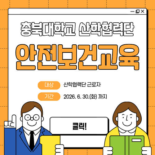 2026년 상반기 산학협력단 안전보건교육을 아래와 같이 실시하고자 하오니 산학협력단 소속 근로자분들은 교육을 수강하여 주시기 바랍니다.