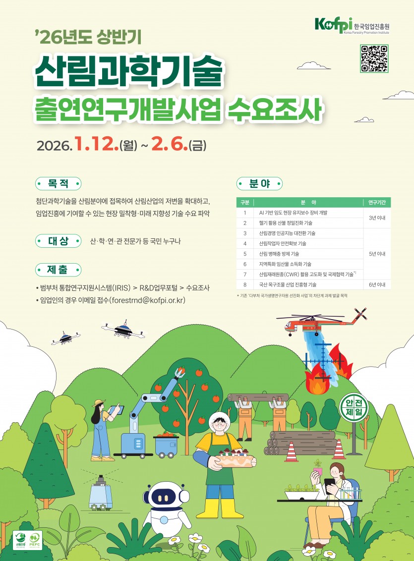 [수요조사-임업진흥원] 산림과학기술 기술수요조사(~26.02.06.)