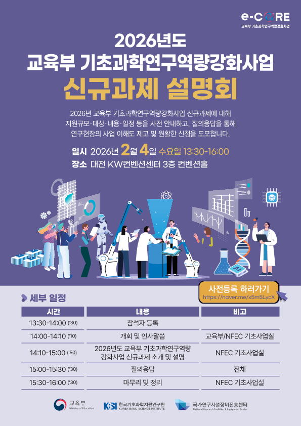 2026년도 교육부 기초과학연구역량강화사업 신규과제 설명회 개최[2.4(수) 13:30-16:00]