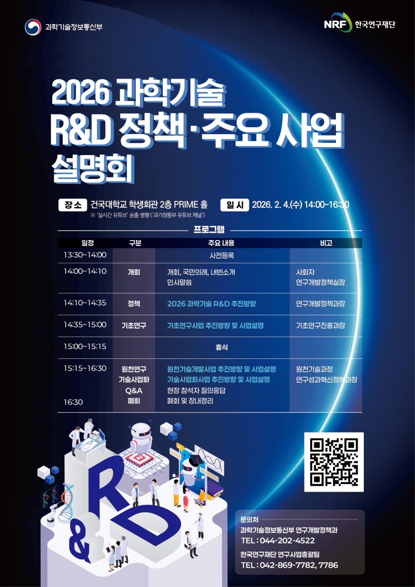 [행사안내-NRF] '26 과학기술 R&D 정책·주요 사업 설명회(26.02.04. 온/오프라인)